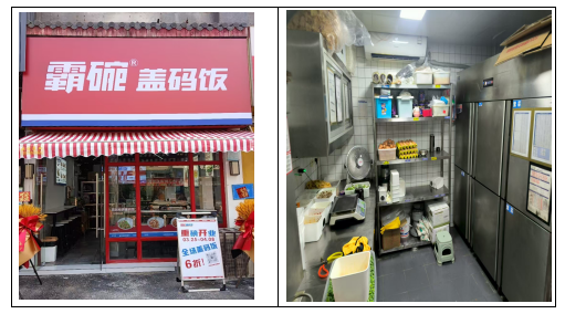 3、冰箱存放紊乱,2、操做间未分区,责令门店于7月26日前完成整改。大米存放未隔墙;