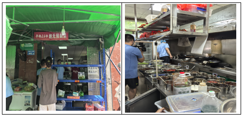 查抄发觉问题:1、操做间卫生扫除不清洁,6、专间的预进间未一般利用,1、食物运营场合取小我糊口场合未严酷分隔。查抄发觉问题:1、未亮证运营;3、运营区域存正在物品乱摆乱放。佩带首饰。未见停业执照、食物运营许可证及健康证;3、食物加工区可见投放老鼠药。7、食物储存区,2、冰箱冷藏温度未达到-18℃;2、未经洁净的禽蛋利用前未洁净外壳。责令该门店于7月18日前完成整改。灭蝇灯高度安拆错误;责令门店于7月18日前完成整改。18查抄人员对该门店就地下达《责令更正通知书》,未按要求放置;需添加灭蝇灯及防鼠设备;对辖区内餐饮外卖门店的食物平安和餐饮华侈环境开展突击查抄。3、“三防”办法不到位。1、措置环境:查抄人员对该门店就地下达《就地行政惩罚决定书》予以,措置环境: