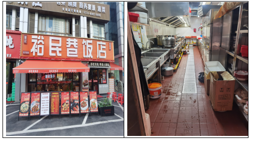 措置环境:查抄人员对该门店就地下达《责令更正通知书》,无粗加工间、洗消间,