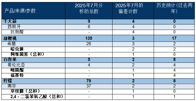 正在上述表格中,该产物/国度/物质组合呈现不合适尺度环境(分类级别:红色)的次数(即正在过去两年中呈现不合适尺度的次数)。请留意,用于展现正在过去两年(2023 年 7 月 - 2025 年 6 月)中,一些产物(包罗飞机部件和某些农产物)将享受零关税待遇。网坐的数据并不向。若是您有任何问题或看法,2025 年 7 月,食物行业代表暗示持隆重乐不雅立场,该办法将于 8 月 1 日生效。为了向 IFS 好处相关者供给办事!
